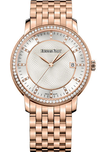 41mm x 41mm x 6.7mm 18K pink gold case, sapphire back, silver dial, self-winding AP...